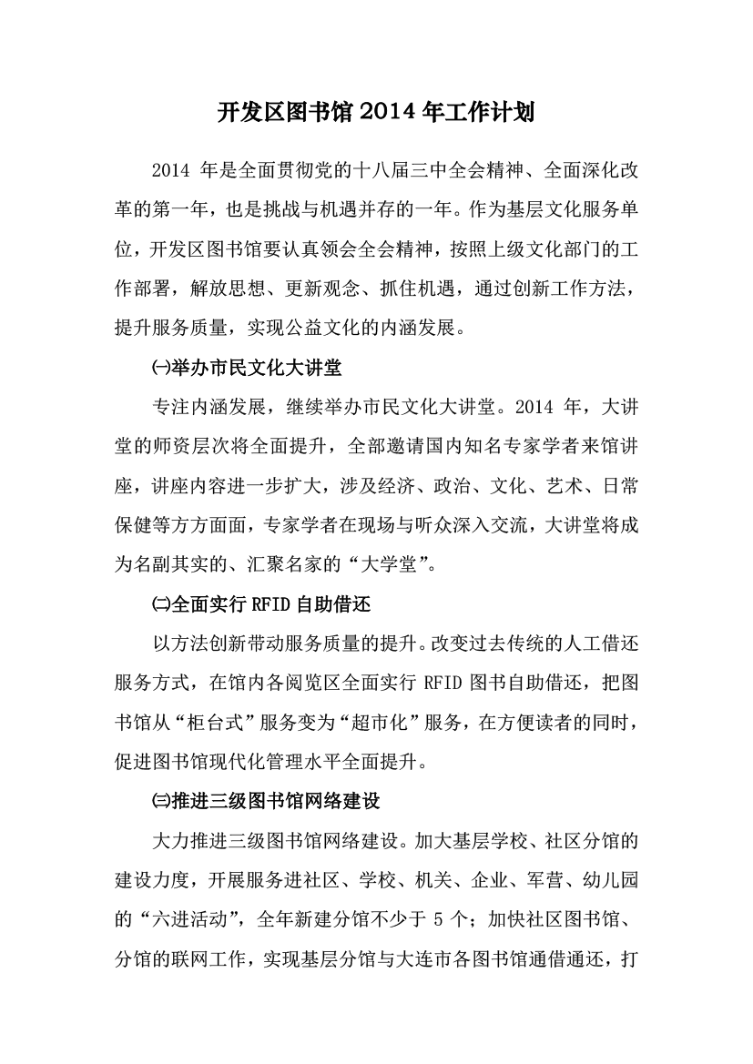 开发区图书馆2014年工作计划